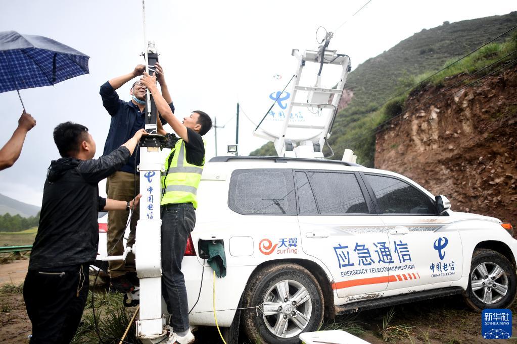 8月18日,中國電信青海公司工作人員在西寧市大通回族土族自治縣青山鄉沙岱村保障應急通信服務(wù)。