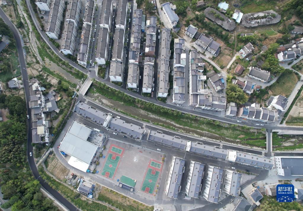 俯瞰老縣鎮錦屏社區(無(wú)人機照片,8月16日攝)。