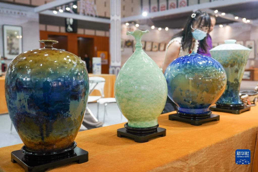 8月18日,觀(guān)眾在第二屆中國工藝美術(shù)博覽會(huì )參觀(guān)特色陶瓷藝術(shù)展品。