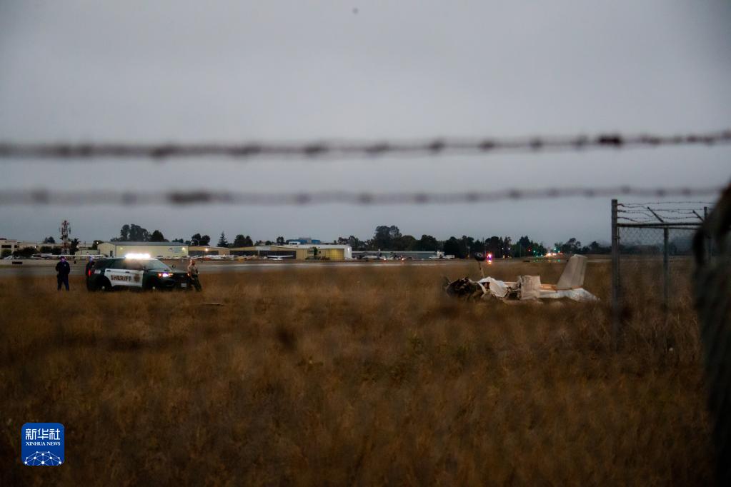 這是8月18日在美國加利福尼亞州沃森維爾市機場(chǎng)拍攝的飛機相撞事故現場(chǎng)。