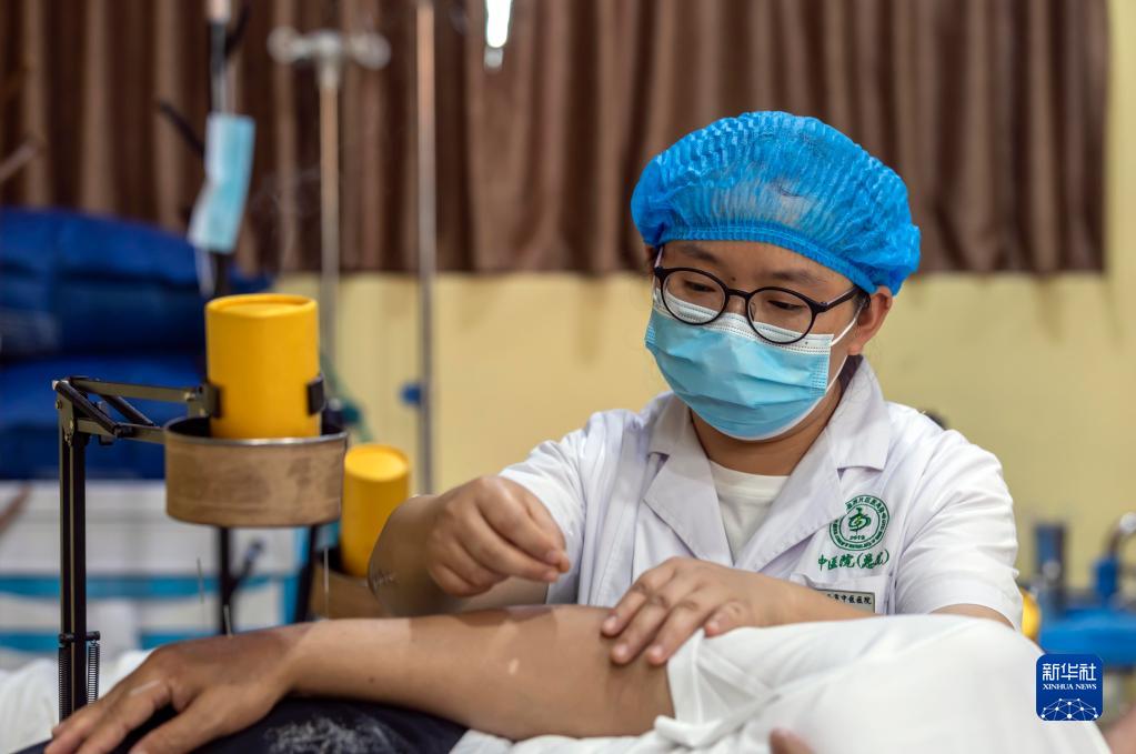 8月19日,醫生在貴州省黔西市中醫醫院國醫館為患者進(jìn)行針灸治療。