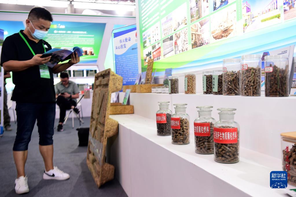 8月19日,與會(huì )者在2022安徽秸稈暨畜禽養殖廢棄物綜合利用產(chǎn)業(yè)博覽會(huì )上了解用秸稈制作的生物質(zhì)燃料。