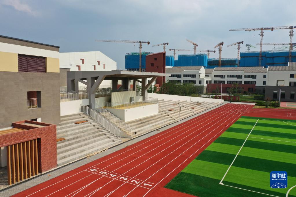 這是史家胡同小學(xué)雄安校區項目一角(8月17日攝,無(wú)人機照片)。