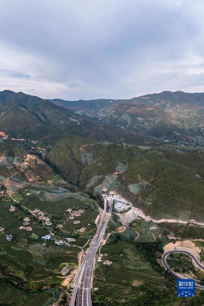 8月19日拍攝的華麗高速營(yíng)盤(pán)山隧道洞口一景(無(wú)人機全景拼接照片)。
