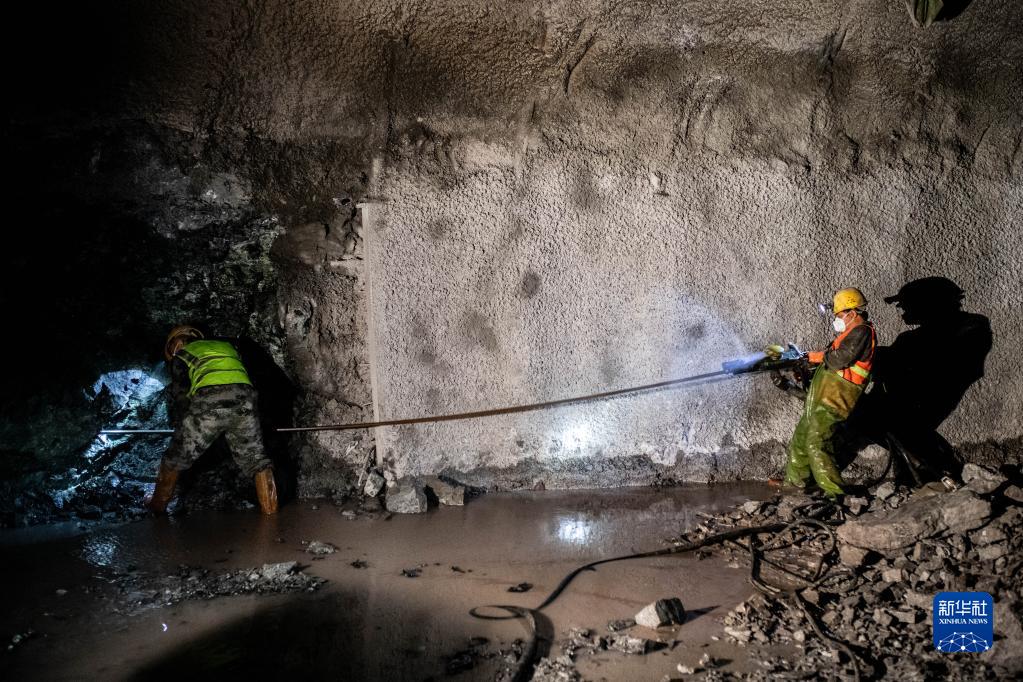 8月19日,工人在華麗高速營(yíng)盤(pán)山隧道內作業(yè)。