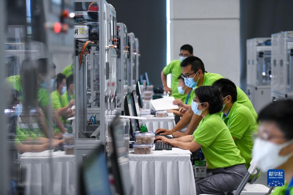 8月19日,選手在工業(yè)大數據算法項目比賽中操作。