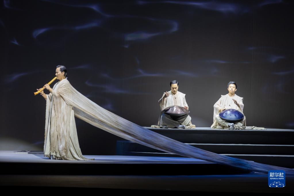 8月19日拍攝的原創(chuàng )民族音樂(lè )會(huì )《海上生民樂(lè )》演出現場(chǎng)。