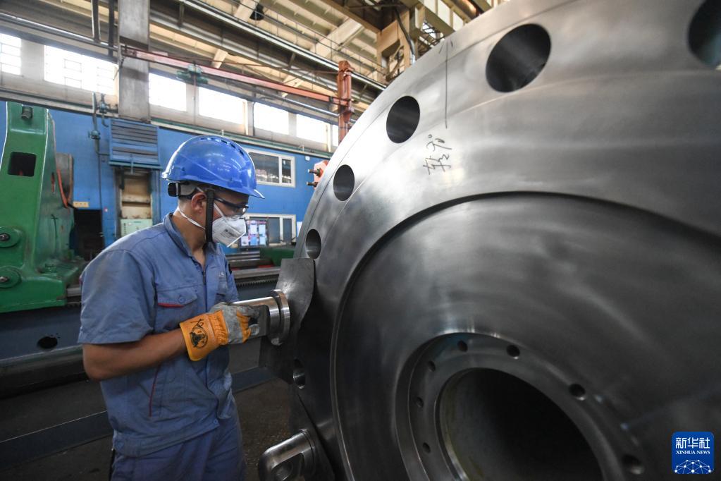 8月20日,在哈電集團哈爾濱電機廠(chǎng)有限責任公司的車(chē)間,工人在生產(chǎn)作業(yè)。新華社記者 王松 攝