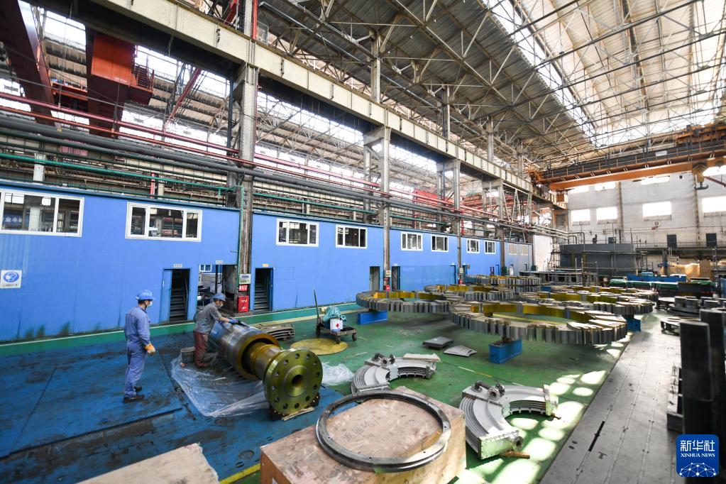8月20日,在哈電集團哈爾濱電機廠(chǎng)有限責任公司的車(chē)間,工人在生產(chǎn)作業(yè)。新華社記者 王松 攝