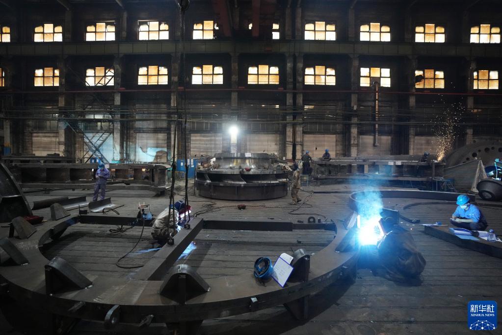 8月19日,在哈電集團哈爾濱電機廠(chǎng)有限責任公司的車(chē)間,工人在生產(chǎn)作業(yè)。新華社記者 王建威 攝
