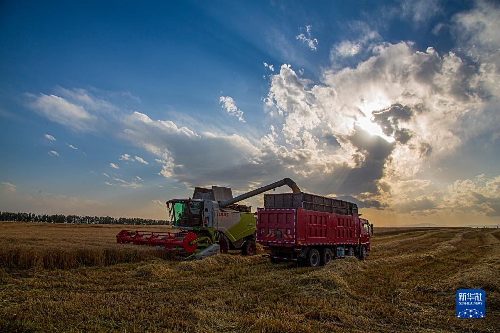 8月,新疆伊犁河谷上的昭蘇高原,連片的麥田陸續成熟,聯(lián)合收割機來(lái)回穿行忙碌,一片豐收景象。