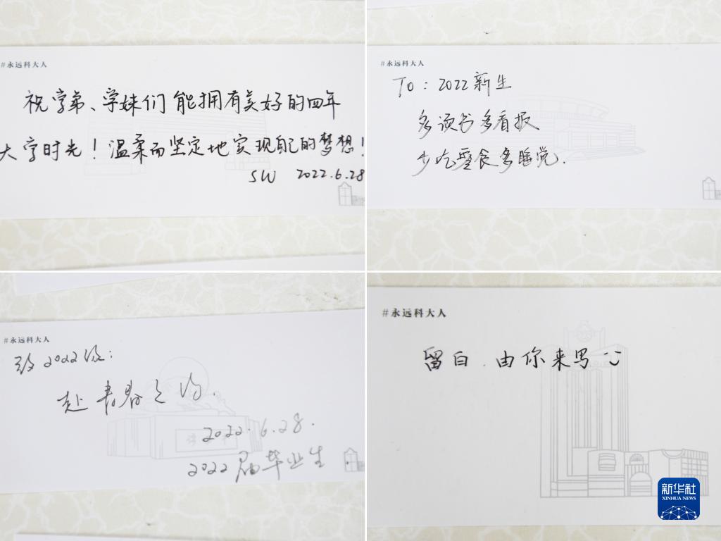 這張拼版照片為8月21日拍攝的2022屆畢業(yè)生寫(xiě)給2022級新生的祝福。