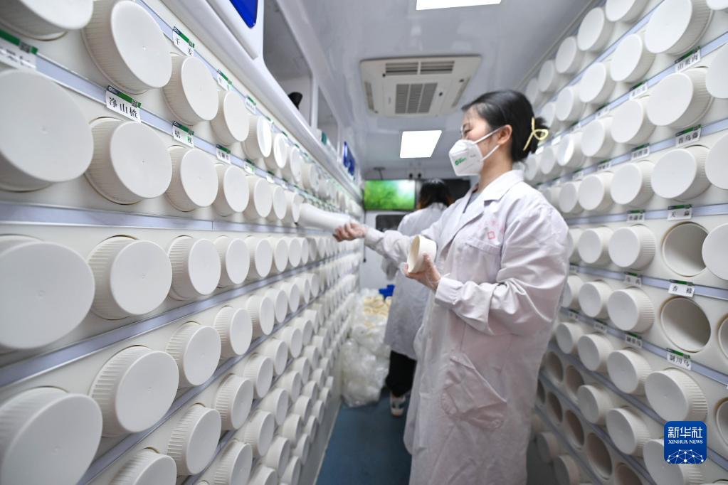 8月20日,在來(lái)自四川的“流動(dòng)應急智能中藥房”里,工作人員將盛有單味中藥濃縮顆粒的藥瓶取下準備制藥。