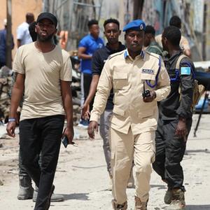 8月21日,警察在索馬里摩加迪沙遇襲酒店附近警戒。