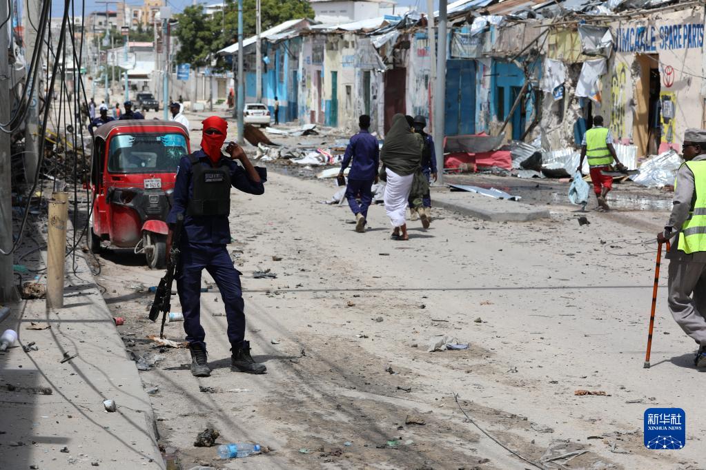 8月21日,警察在索馬里摩加迪沙遇襲酒店附近警戒。