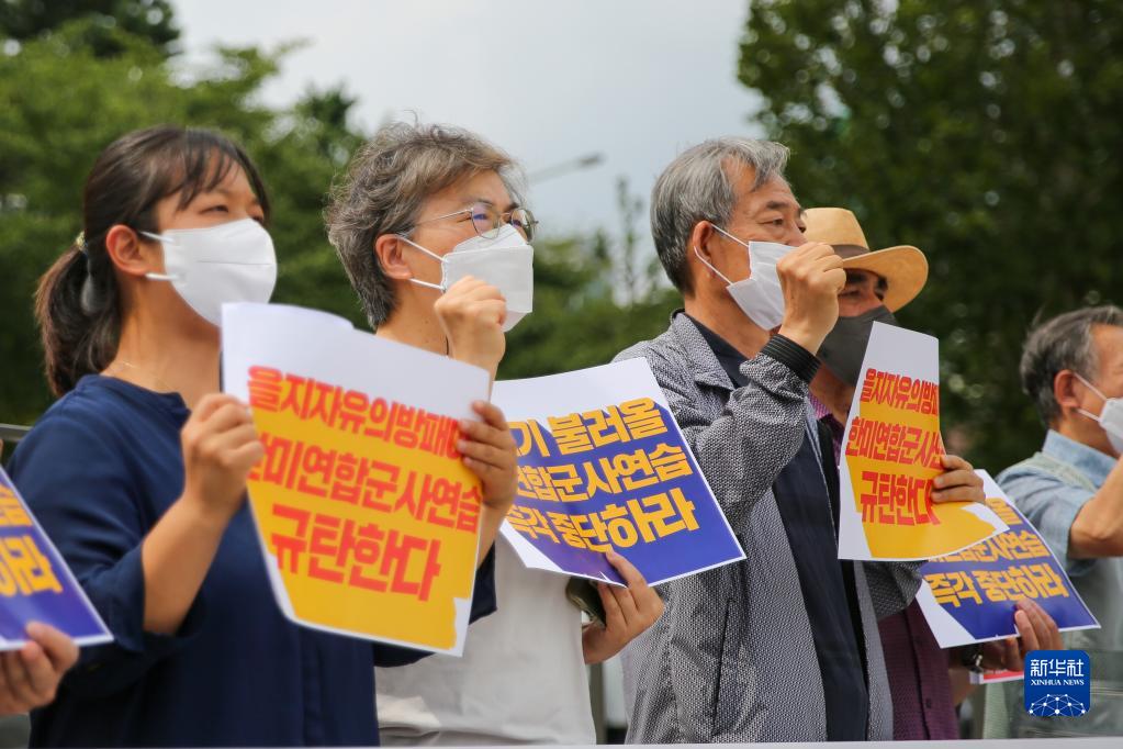 韓美兩國軍隊22日正式啟動(dòng)下半年“乙支自由之盾”聯(lián)合軍演。韓國多個(gè)民間團體當天在首爾舉行抗議集會(huì )。