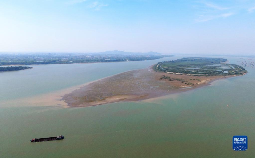 8月22日拍攝的長(cháng)江江都段部分裸露灘涂(無(wú)人機照片)。