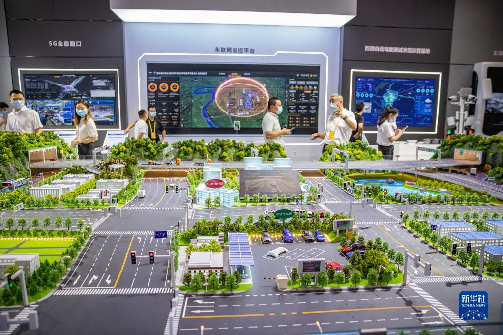8月22日,嘉賓在2022智博會(huì )重慶展廳內參觀(guān)車(chē)路協(xié)同沙盤(pán)。