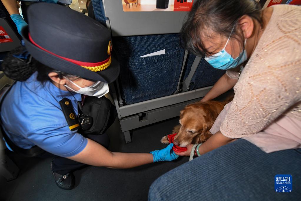 8月19日,在河源東到深圳北的G2267次車(chē)上,列車(chē)長(cháng)李雙(左)幫助張莉給滿(mǎn)悅喂水。