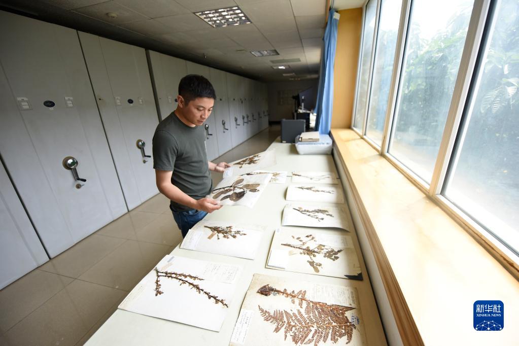 胡君在中科院成都生物研究所標本館內查閱標本(8月17日攝)。新華社記者 劉坤 攝