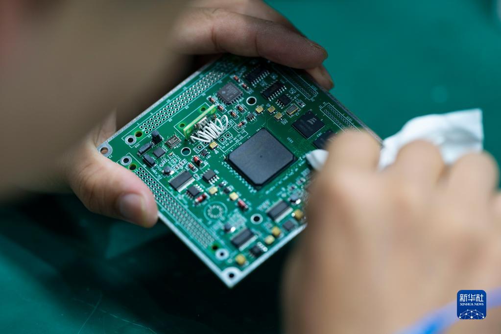2022年8月3日,在長(cháng)光衛星技術(shù)股份有限公司電裝車(chē)間,陳茂勝團隊的電裝操作員在進(jìn)行電路板清洗。