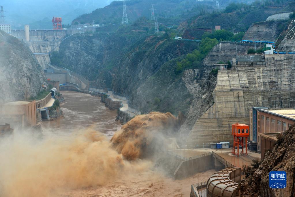 當日,受強降水天氣影響,黃河劉家峽水庫來(lái)沙量急劇增加,劉家峽水庫按照調度要求進(jìn)行調水排沙。夾裹著(zhù)大量泥沙的水流從排沙洞出口噴涌而出,場(chǎng)面壯觀(guān)。