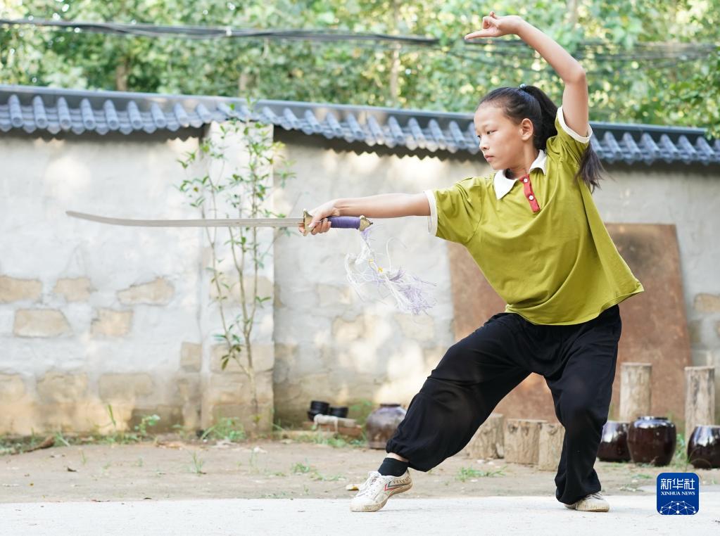 劉龍二女兒劉亦點(diǎn)在展示初級劍(8月16日攝)。