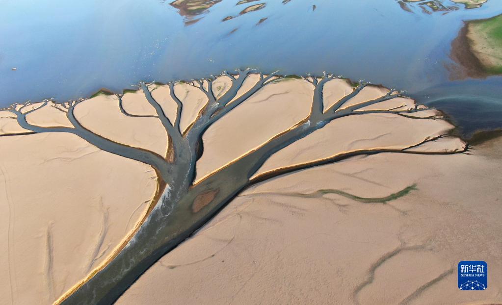 受連日高溫少雨天氣影響,中國最大淡水湖鄱陽(yáng)湖水位持續下降。鄱陽(yáng)湖進(jìn)賢段水域灘涂在水流分支的沖刷下,呈現出栩栩如生的“大地之樹(shù)”景觀(guān)。