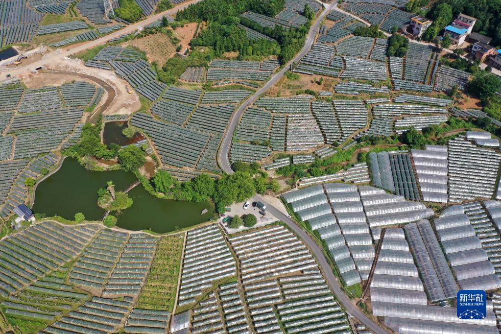 這是廣西全州縣才灣鎮毛竹山村葡萄園(8月23日攝,無(wú)人機照片)。