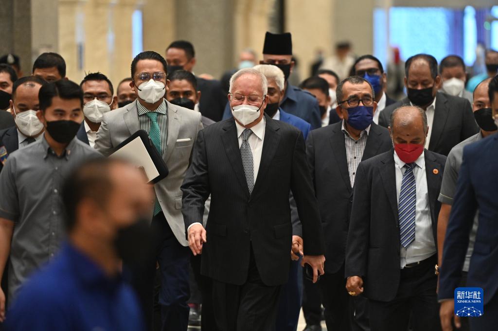 馬來(lái)西亞聯(lián)邦法院23日終審駁回前總理納吉布的上訴,裁定維持吉隆坡高等法院對其所涉多項貪腐罪名處以12年監禁和2.1億林吉特(約合3.2億元人民幣)罰款的判決。新華社發(fā)(張紋綜攝)