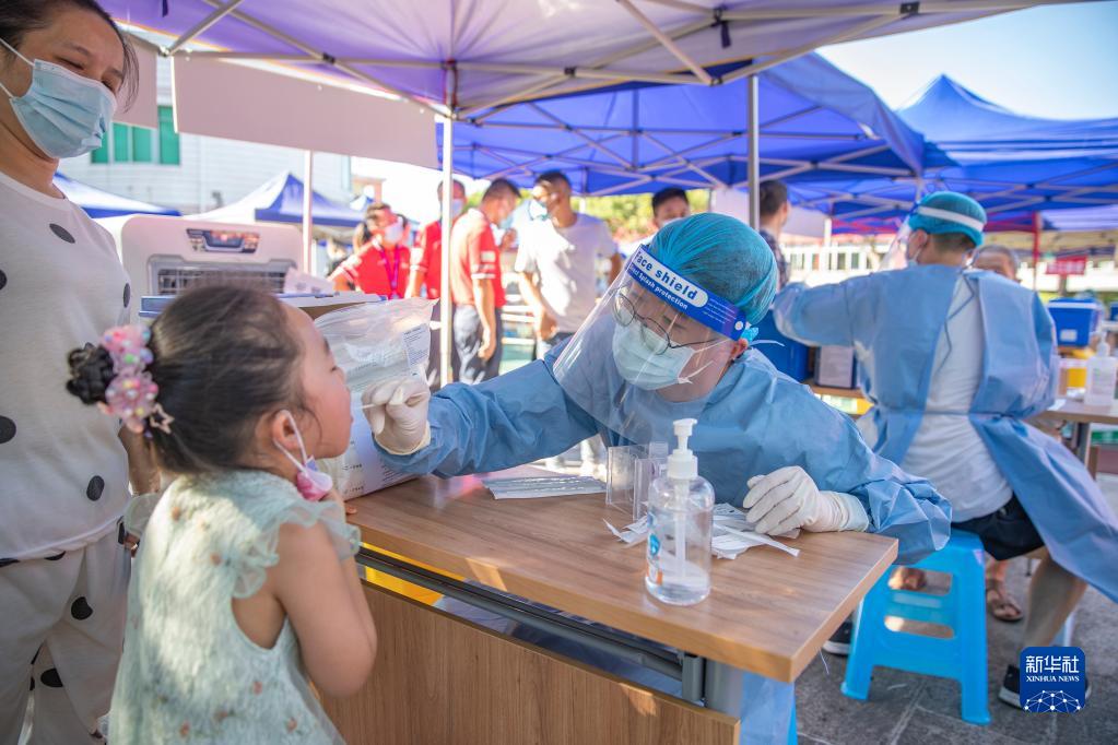 8月24日,居民在重慶市兩江新區人和街道和睦路社區采樣點(diǎn)進(jìn)行核酸檢測。
