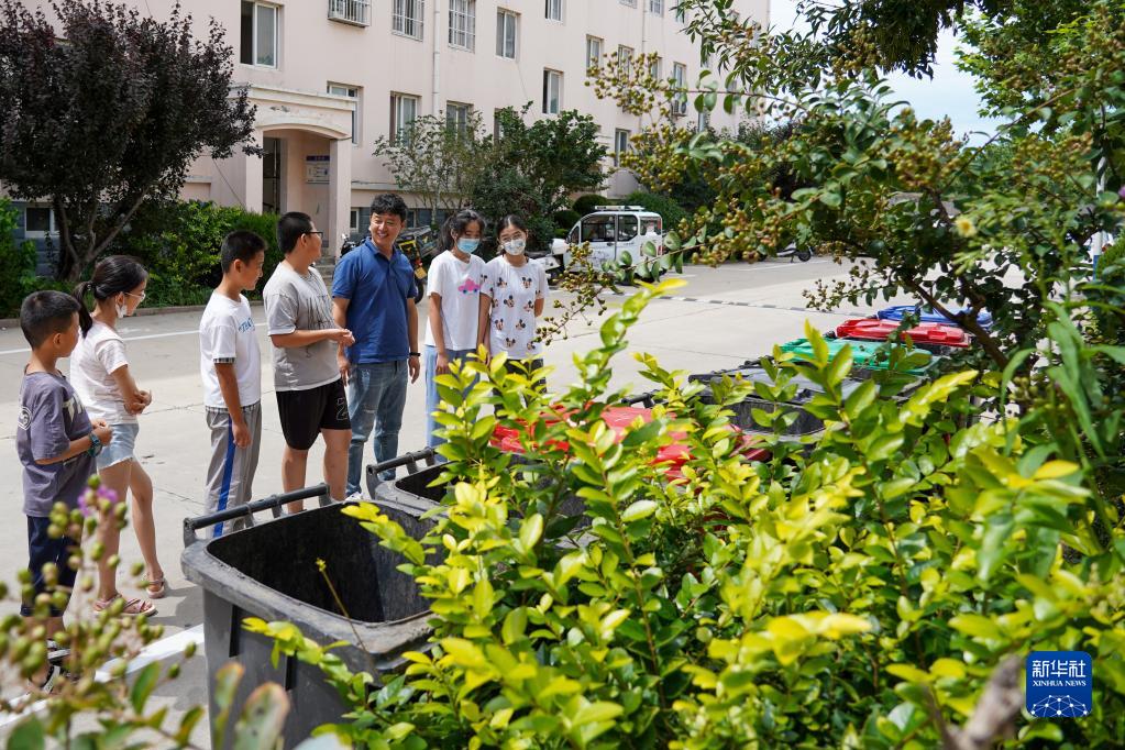 8月24日,威海市魏橋社區工作者張帥克(右三)和孩子們一起討論社區垃圾分類(lèi)管理問(wèn)題。去年7月,該社區成立由不同年齡段少年兒童組成的兒童議事會(huì ),為兒童提供平等對話(huà)平臺。