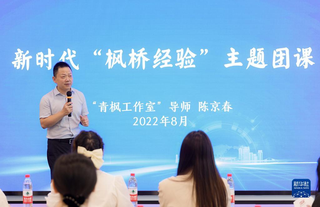 8月25日,浙江省諸暨市“青楓工作室”導師陳京春給青年學(xué)子講授新時(shí)代“楓橋經(jīng)驗”主題團課。