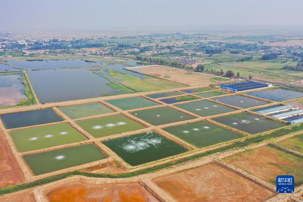 俯瞰烏海市鹽堿水對蝦養殖園區的蝦田(8月25日攝,無(wú)人機照片)。