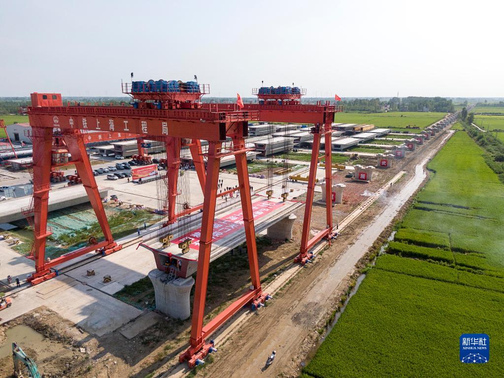 滬渝蓉高鐵天門(mén)段首榀箱梁成功架設