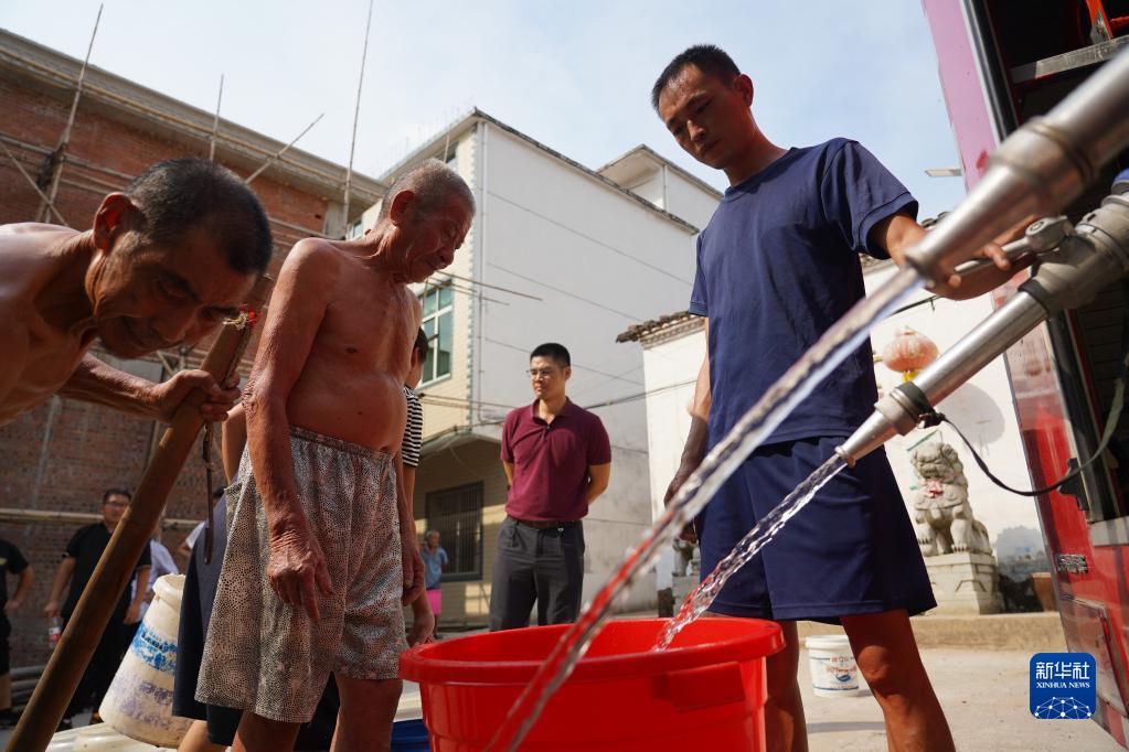 消防員在瑞昌市范鎮中源村送水(8月23日攝)。