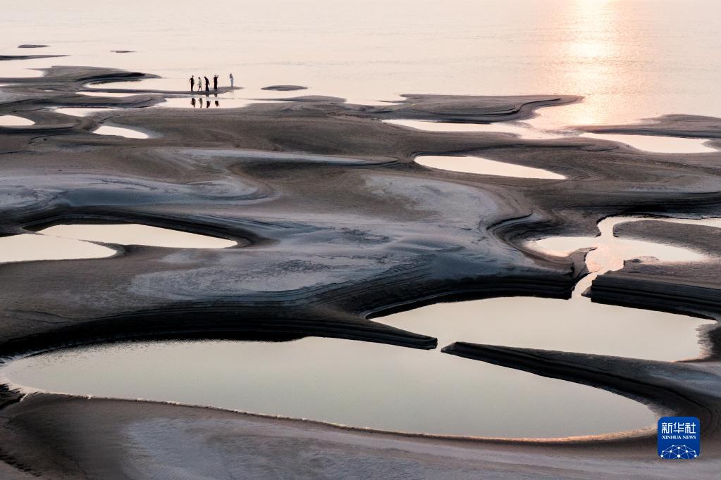 近日,長(cháng)江武漢段水位持續降低,武漢市天興洲露出大片灘涂。