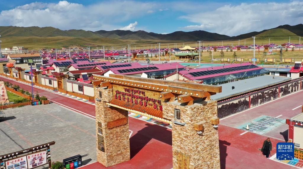 這是甘肅省甘南藏族自治州碌曲縣尕海鎮尕秀村村貌(無(wú)人機照片,2021年9月9日攝)。新華社記者 陳斌 攝