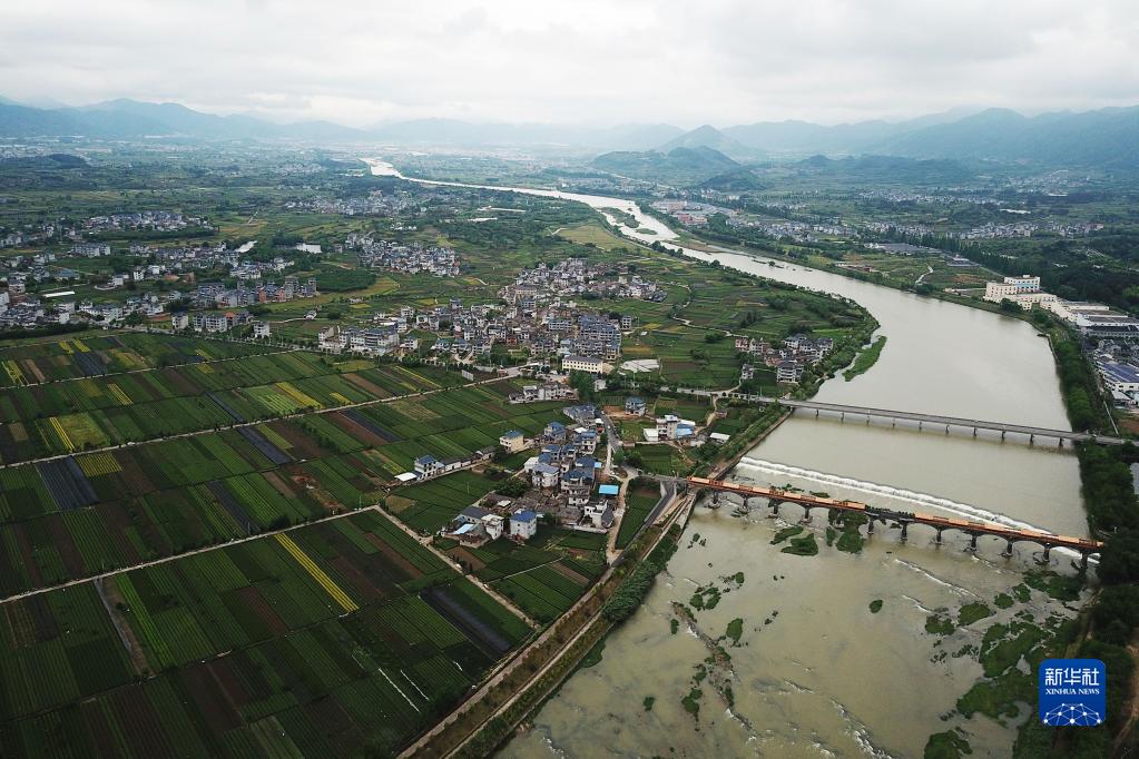 浙江省松陽(yáng)縣齋壇鄉石門(mén)圩村及松陰溪景區(2018年4月24日攝,無(wú)人機照片)。新華社記者 黃宗治 攝