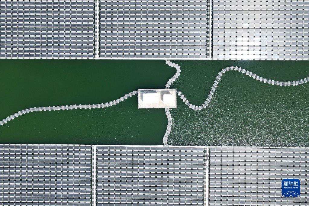 8月25日拍攝的潁上縣毛圩水上光伏電站(無(wú)人機照片)。
