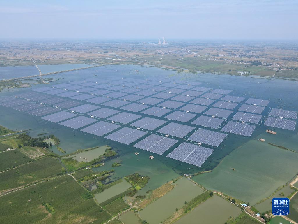 8月25日拍攝的潁上縣毛圩水上光伏電站(無(wú)人機照片)。