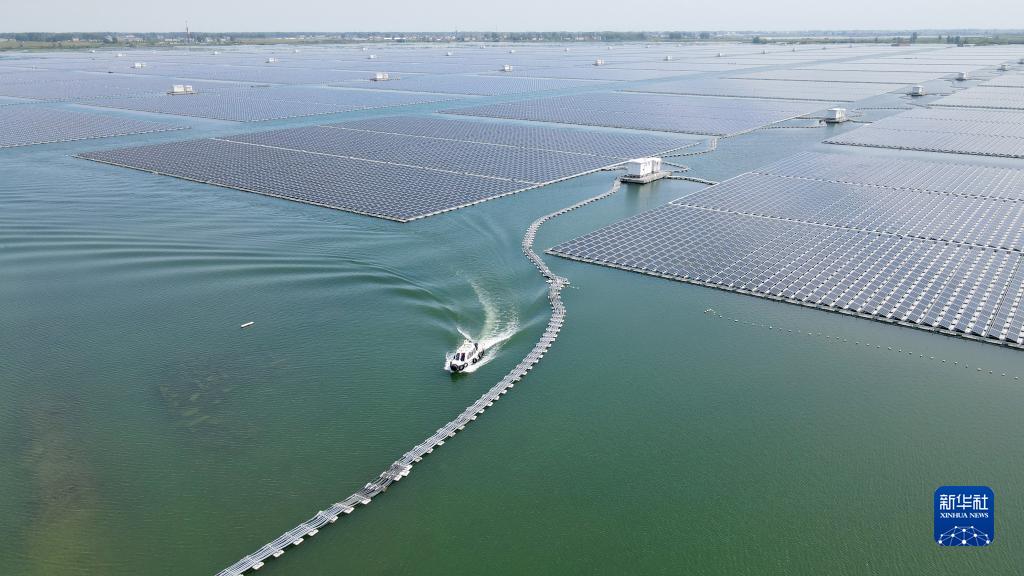 8月25日拍攝的潁上縣毛圩水上光伏電站(無(wú)人機照片)。