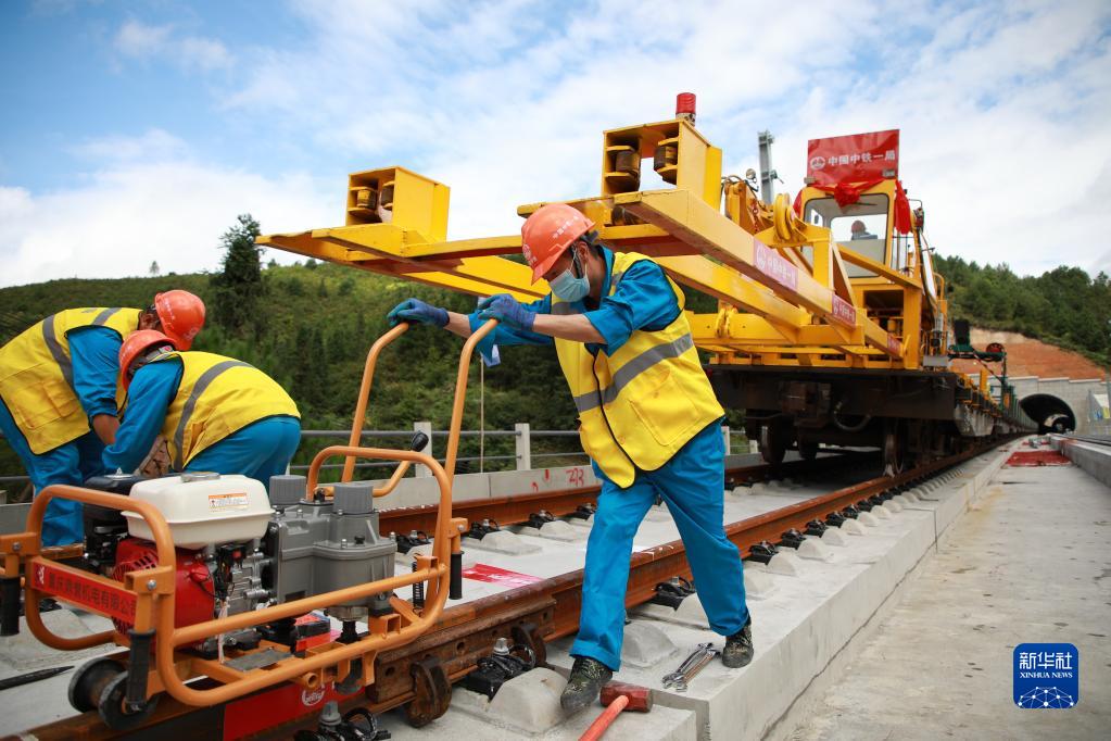 8月26日,中鐵一局建設者們在進(jìn)行鋪軌施工。