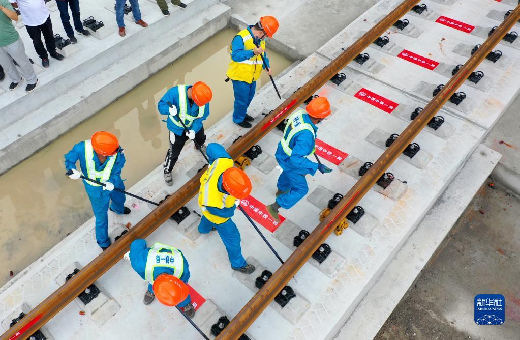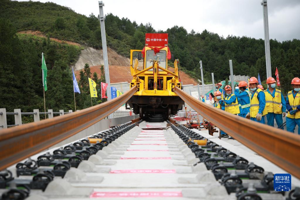 8月26日,中鐵一局建設者們在進(jìn)行鋪軌施工。