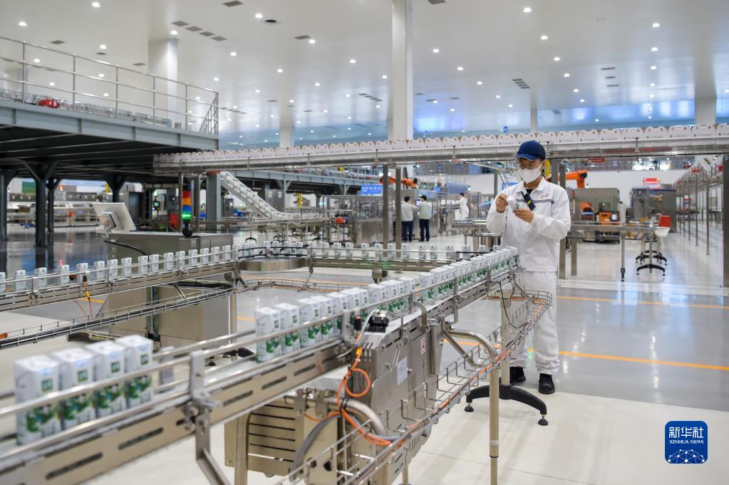 8月25日,在位于呼和浩特市的伊利現代智慧健康谷液態(tài)奶全球智造標桿基地,工人在生產(chǎn)線(xiàn)上作業(yè)。新華社記者 李志鵬 攝