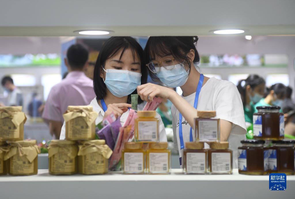 8月26日,客商在廣州博覽會(huì )鄉村振興展上參觀(guān)選購農副產(chǎn)品。