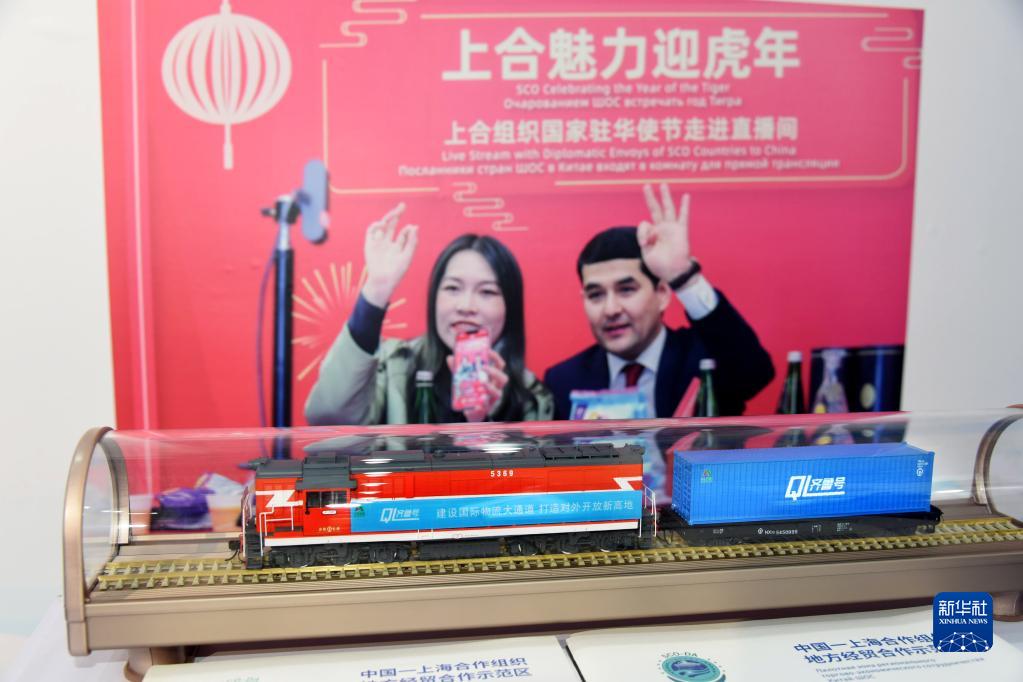 8月26日在中國—上海合作組織地方經(jīng)貿合作示范區展臺拍攝的“中歐班列”模型。