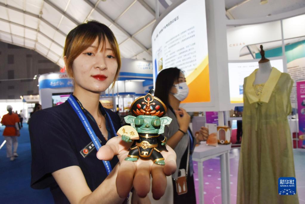 8月26日,參展商在博覽會(huì )上展示三星堆文創(chuàng )產(chǎn)品。