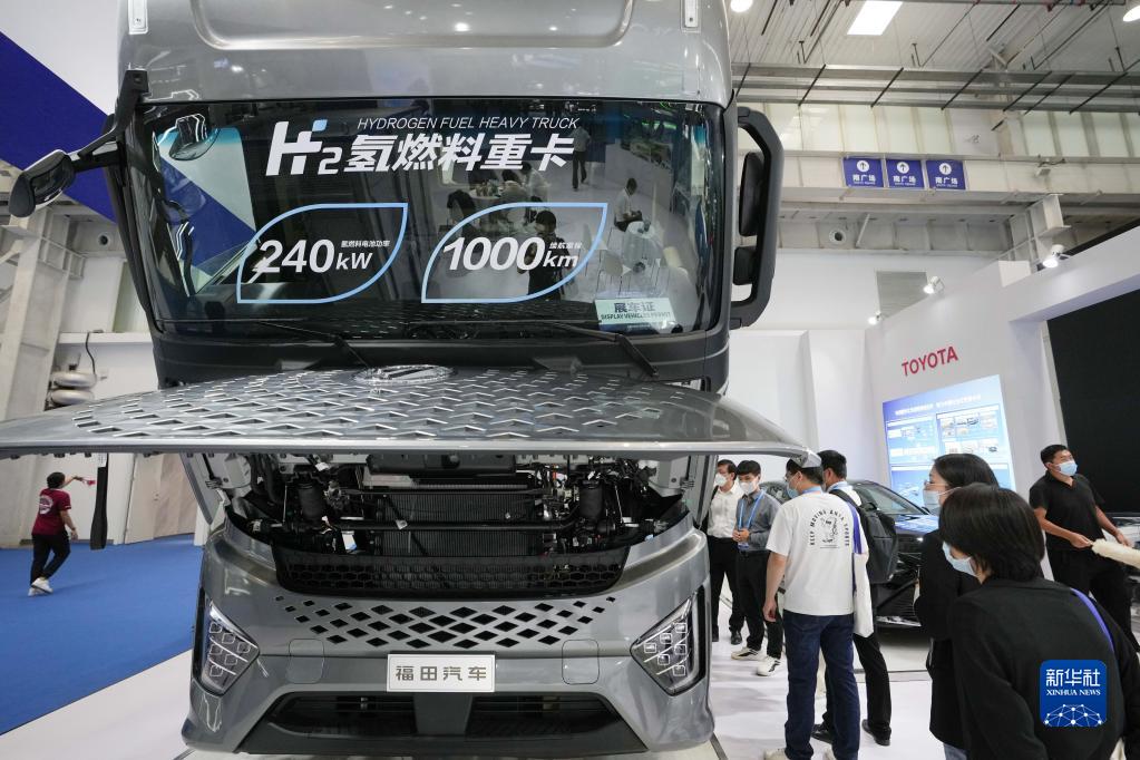 8月26日,參觀(guān)者觀(guān)看展出的一款氫燃料重卡產(chǎn)品。
