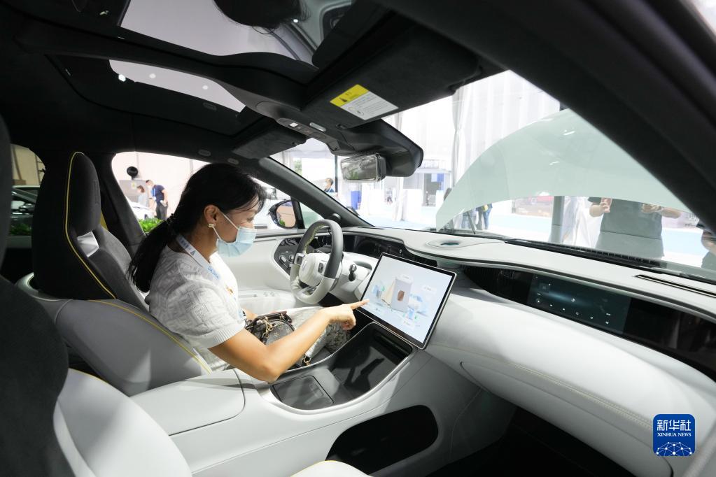 8月26日,參觀(guān)者在體驗一臺新能源汽車(chē)。